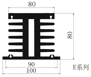 (注:E系列散熱器可加裝風(fēng)扇,型號8025,尺寸25mm×80mm×80mm) |