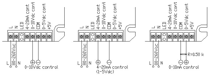 0-10Vdc自動(dòng)控制方式 4-20mA(1-5Vdc)自動(dòng)控制方式 0-10mA自動(dòng)控制方式