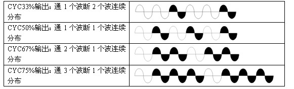 9、輸出CYC方式:負(fù)載電流按正弦波均勻通斷分布