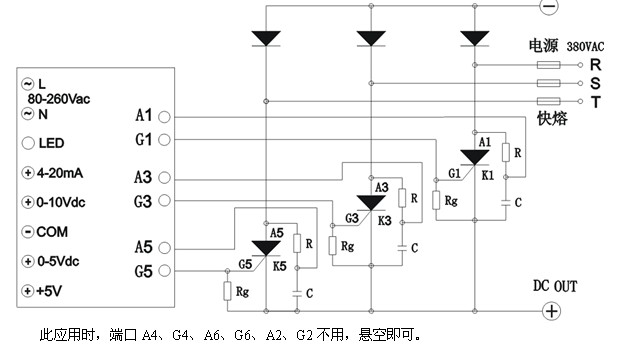 6、主電路中可控硅的陽極和陰極間必須加一阻容吸收回路保護,其中電阻一般選30-100Ω、3W以上,電容選0.1-1.0μf、400VAC以上。電阻Rg為200-470Ω,1/2W,此電阻也可不接。