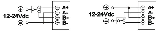 7、輸入控制電壓為12-24Vdc,共陽或共陰可任意接線。控制線共陽連接時(shí),A—、B—端低電平有效,當(dāng)A—、B—端同時(shí)為低電平時(shí)模塊自動(dòng)關(guān)閉。共陰連接時(shí),A+、B+端高電平有效,當(dāng)A+、B+端同時(shí)為高電平時(shí)模塊自動(dòng)關(guān)閉。其他控制電壓也可定制。